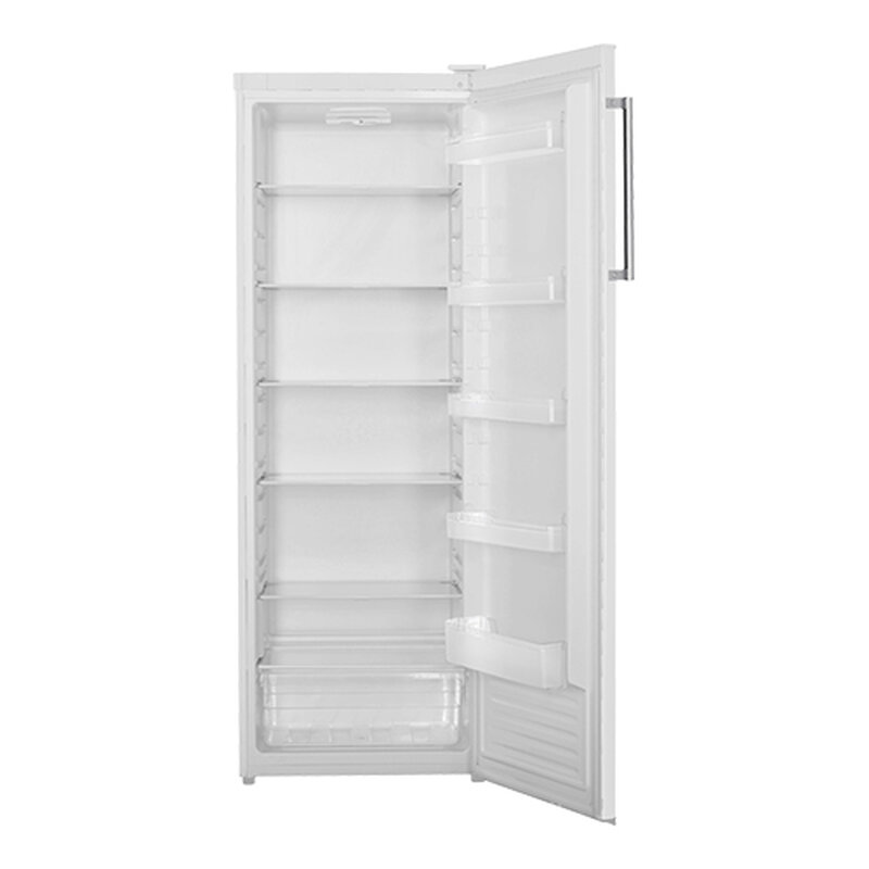 deze ruime koelkast combineert een strak design met een praktische indeling en is een uitstekende keuze binnen zijn segment. Met 331 liter netto inhoud biedt hij volop ruimte om al uw producten langdurig vers te houden. De koelkast is uitgerust met vijf verstelbare glazen legplaten, een groentelade, vijf opbergvakken in de deur en heldere LED-verlichting. Dankzij de draaiknop met zeven temperatuurstanden is de bediening eenvoudig en overzichtelijk. Met energielabel E is deze koeler bovendien een zuinige en betrouwbare keuze voor dagelijks gebruik