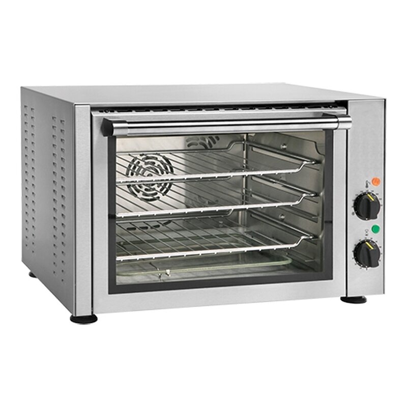 deze heteluchtoven van Roller Grill is ideaal voor het bakken of opwarmen van brood, gebak, pizza's, maaltijden, enz. (bevroren, vers of voorgebakken), de temperatuur gaat in 7 minuten naar 270°C, met ventilatiegaten voor een perfecte luchtcirculatie, wordt compleet geleverd met 1 bakplaat en 2 roosters (41x31 cm)