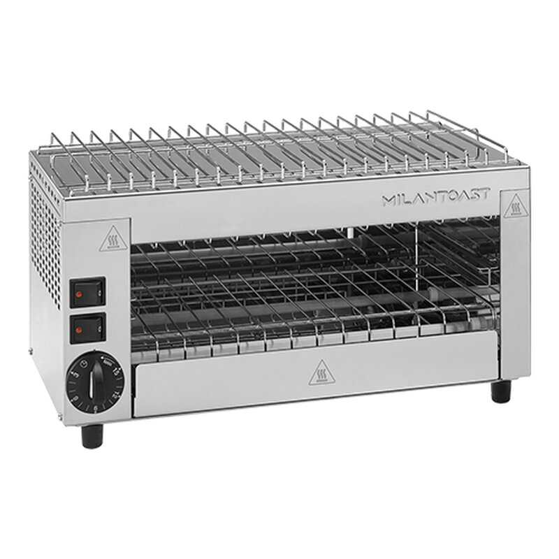 de quartzbuizen kunnen afzonderlijk bedient worden en daardoor is het tosti apparaat ook zeer geschikt voor o.a. gratineren en grillen, dit wordt nog eenvoudiger gemaakt door de opklapbare achterzijde, het apparaat is voorzien van een tijdklok en lekbak
