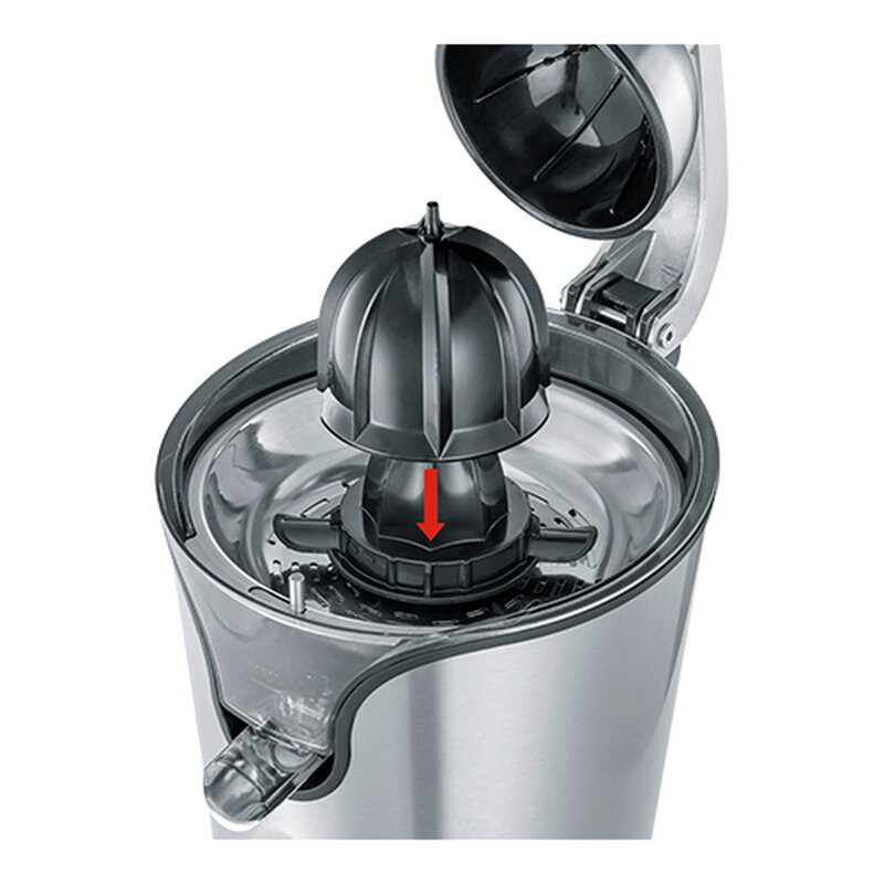 dankzij twee roestvrijstalen zeven met vruchtvleesregelaar kan ook het gehalte aan vruchtvlees in het sap geheel naar wens worden geregeld