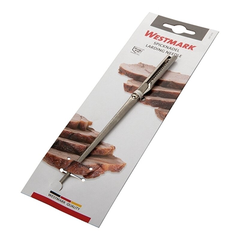 voor het doorrijgen van mager vlees met vet of kruiden, uitgerust met klemmetje aan één zijde
