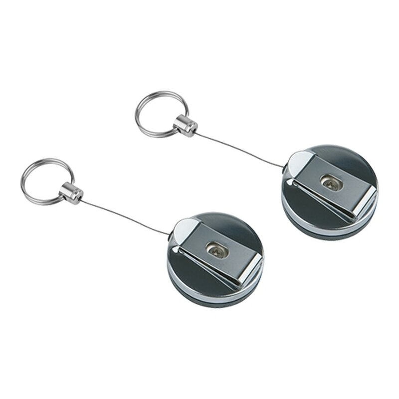 roestvrijstalen kaart- sleutelkoord, eenvoudig te bevestigen aan broek of riem doormiddel van de clip, maximale lengte van het koord 65cm