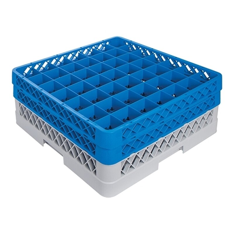 de robuuste vaatwaskorven verkleinen de kans op breuk, zijn ruimtebesparend en door de extra grote maaswijdte, vervaardigd van speciaal polypropyleen, de opzetranden verschaffen een maximale afscheiding en bescherming tussen de glazen onderling en zorgen voor grotere hoogte