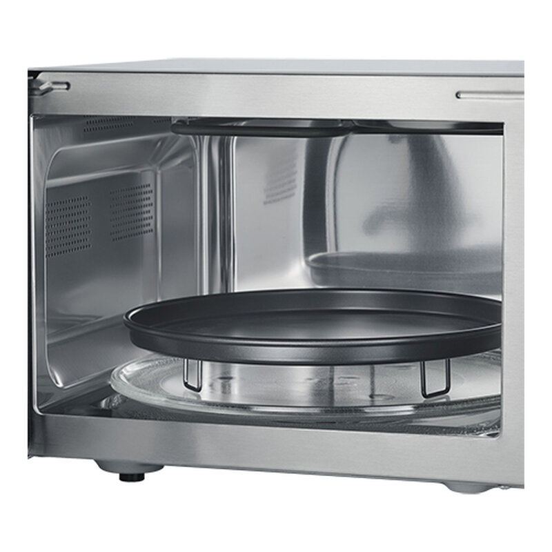 hoogwaardige roestvrijstalen afwerking met spiegelende deur en voorzien van uitneembaar draaiplateau Ø28 cm. Met 3 in te stellen kookprogramma's, 10 verschillende vermogensstanden met o.a. ontdooistand op basis van gewicht of tijd en 8 verschillende automatische programma's. De magnetron beschikt over diverse quick-select functies voor gebruik van de magnetron, grill en hetelucht functie of een combinatie van deze functies, tot 2 automatische programma's zijn achter elkaar te programmeren