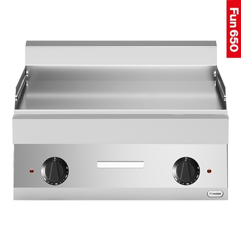 maximaal benut bakplaat oppervlak met zeer korte opwarmtijd, bakplaat vervaardigd van speciaal gegoten en glad geslepen speciaal staal, extra grote ingebouwde vetopvanglade