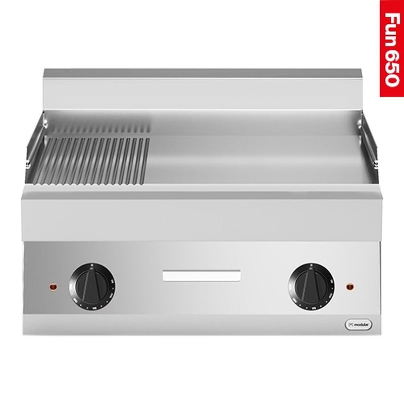maximaal benut bakplaat oppervlak met zeer korte opwarmtijd, bakplaat vervaardigd van speciaal gegoten en glad geslepen speciaal staal, extra grote ingebouwde vetopvanglade