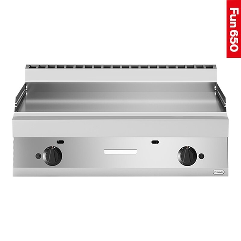 maximaal benut bakplaat oppervlak met zeer korte opwarmtijd d.m.v. een dubbele gasbrander, bakplaat vervaardigd van gegoten en glad geslepen speciaal staal, met extra grote ingebouwde vetopvanglade