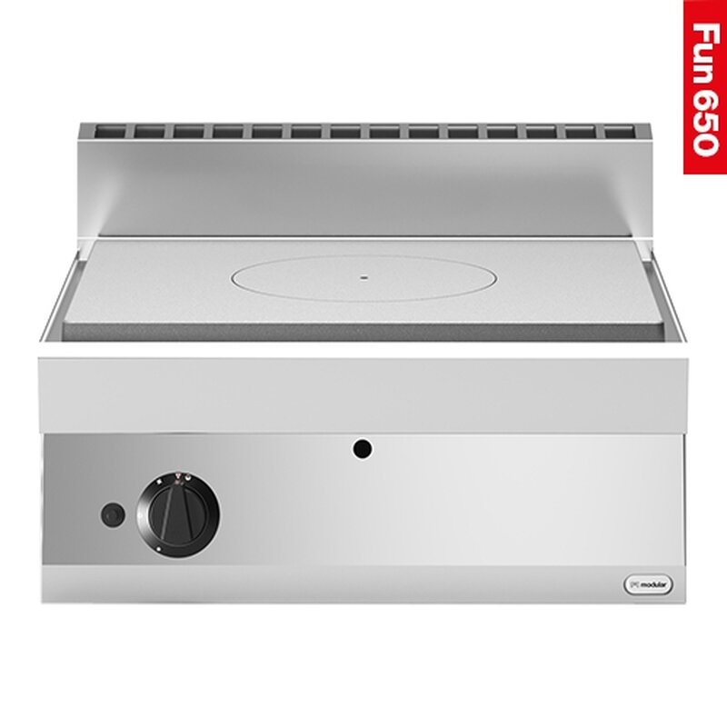 de plaat is vervaardigd van gegoten en glad geslepen speciaal staal welke verhit wordt door een centraal geplaatste brander, de temperatuur neemt af naarmate de pan meer aan de rand geplaatst wordt
