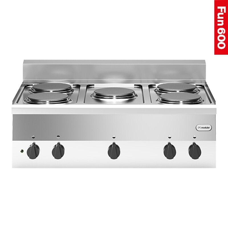 zwaar gegoten EGO kookplaten met 6 standen schakelaar en controlelampje per kookplaat, verhittingsoppervlak Ø22cm, voorzien van roestvrijstalen rand