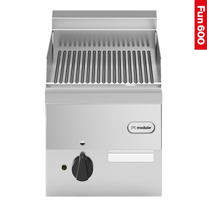 maximaal benut bakplaat oppervlak met zeer korte opwarmtijd, bakplaat vervaardigd van speciaal gegoten en glad geslepen speciaal staal, extra grote ingebouwde vetopvanglade