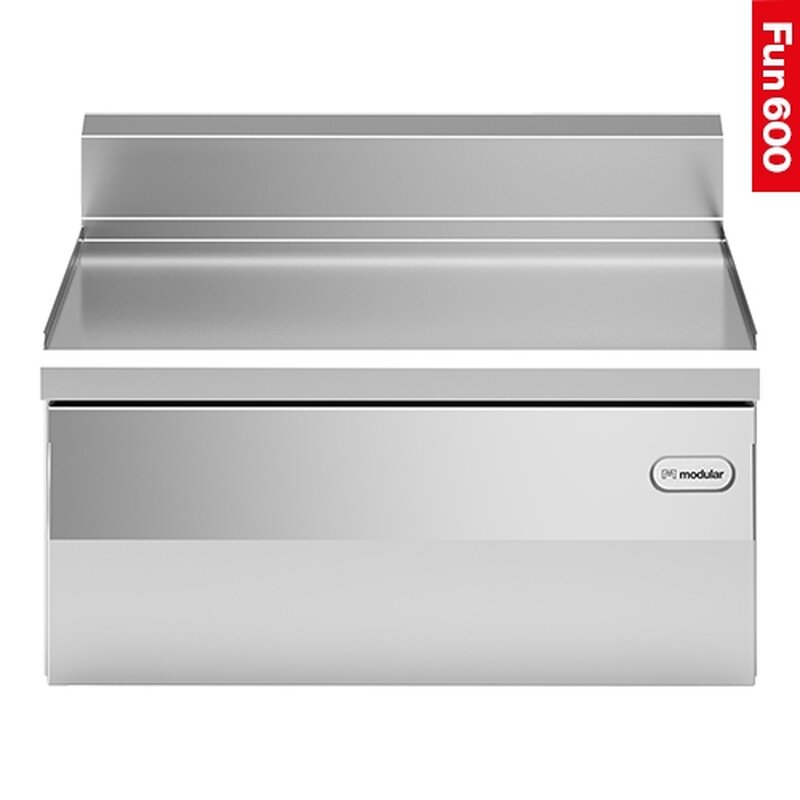 voorzien van roestvrijstalen opberglade en roestvrijstalen bovenzijde welke ook geschikt is voor opleg nylon snijblad (zie Modular 600 accessoires)