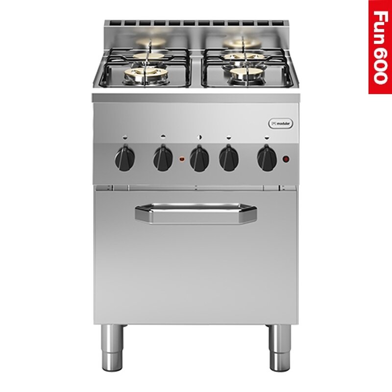 compact gasfornuis met 4 branders en elektrische heteluchtoven, de oven heeft een binnenafmeting van 32,5(H)x39x34cm. Wordt geleverd met oven rooster 2/3GN