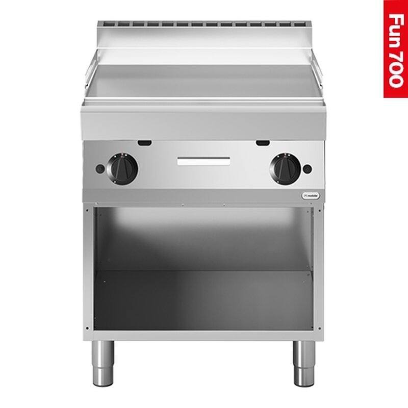 maximaal benut bakplaat oppervlak met zeer korte opwarmtijd d.m.v. een dubbele gasbrander, bakplaat vervaardigd van gegoten en glad geslepen speciaal staal, met extra grote ingebouwde vetopvanglade