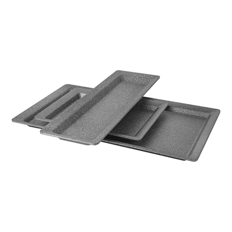 deze gegoten aluminium ''FROSTFIRE'' GN-serveerplateau met antiaanbaklaag kunt u gebruiken om gerechten warm of koud te presenteren. Warmte of koude wordt gemakkelijk door het gegoten aluminium geleid en heeft daardoor vele toepassingen, bijvoorbeeld in een koelvitrine of onder warmtelampen