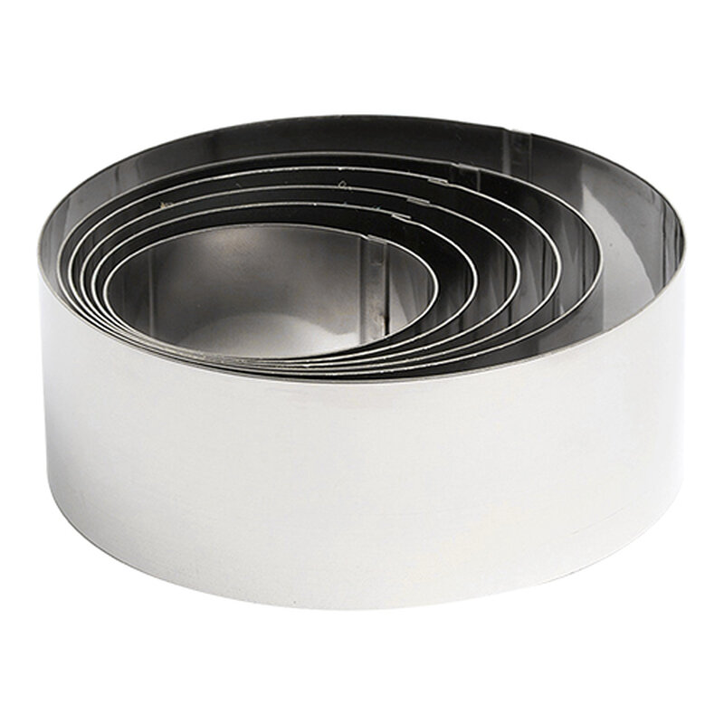 deze set voedselringen is perfect voor het strak en professioneel opmaken van gerechten. Ideaal voor het vormen van tartaar, rijst, mousse of desserts. Gemaakt van hoogwaardig roestvrij staal en geschikt voor intensief gebruik. Set met 6 diameters: Ø 6 / 7 / 8 / 9 / 10 / 12 cm