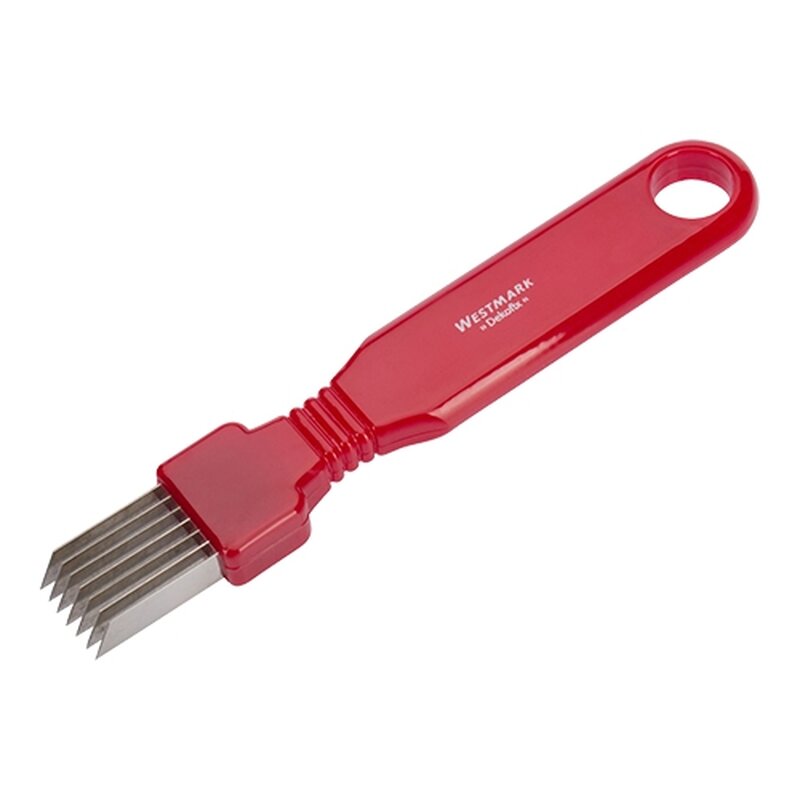met zeven scherpe messen snijdt u moeiteloos augurken of andere kleine groenten in gelijkmatige, waaiervormige plakjes. Perfect voor een stijlvolle en snelle presentatie van hapjes of garnering