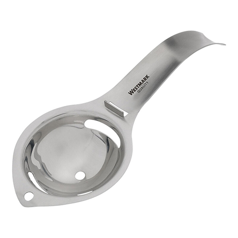 met deze gebogen eigeelscheider scheidt u eenvoudig en hygiënisch het eigeel van het eiwit. Dankzij de geïntegreerde opkloprand breekt het ei moeiteloos open, terwijl de scheider stevig blijft liggen
