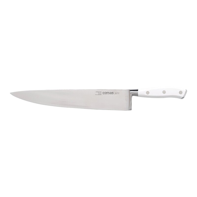 vervaardigd uit hoogwaardig Duits staal, bekend om zijn uitstekende scherptebehoud en weerstand tegen oxidatie en slijtage. Elk mes is zorgvuldig uitgebalanceerd voor optimale controle en comfort, zelfs bij intensief gebruik. Het strakke, witte design voegt een stijlvolle touch toe aan elke keuken