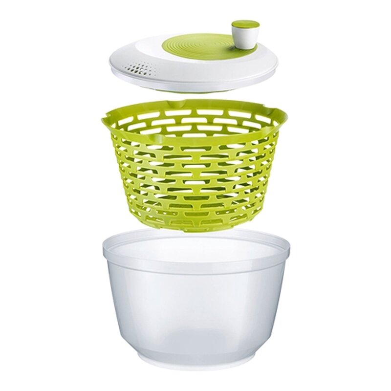 met deze stevige slacentrifuge was en droog je sla moeiteloos. De ergonomische draaiknop en antislipbodem zorgen voor gebruiksgemak, terwijl de schenktuit en de compacte opbergmethode extra praktisch zijn