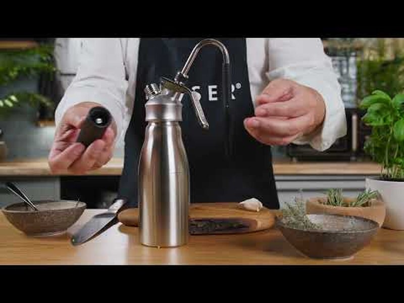 ontdek de Kayser Rapid Infusion Set voor je WHIPcreamer. Geef olie, alcohol of water snel smaak met fruit, kruiden of specerijen door het onder druk te brengen met een slagroompatroon. Na dit proces kan het gas via het mondstuk van de Rapid Infusion Set ontsnappen. Het resultaat: smaakvolle vloeistoffen die eenvoudig door het geïntegreerde zeefje kunnen worden geschonken