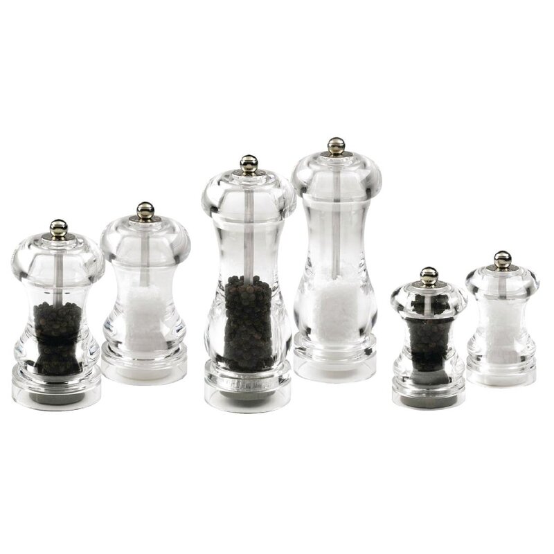Kristalhelder acryl. Levenslange garantie op maalmechanisme. Peper mechanisme is instelbaar voor fijn tot grof malen. Hoogte van 8,5cm.
