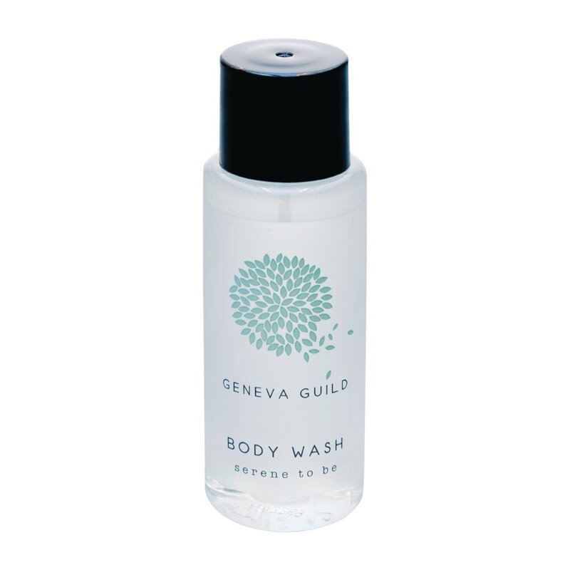 Een neutrale en eigentijdse lijn toiletartikelen in biologisch afbreekbare flesjes.