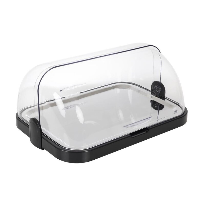 Rolltop display met RVS serveerblad en meegeleverde koelingen. Afmetingen (cm): 20,5 (h)x44 (b)x32 (d).
