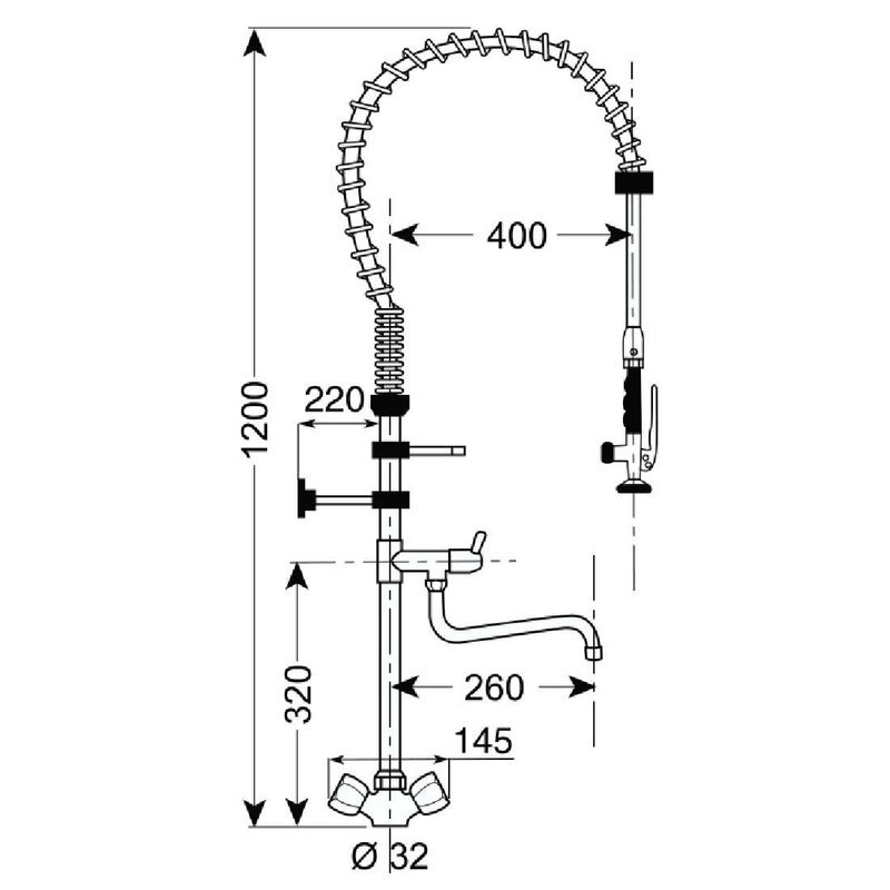Gastro M Voorspoeldouche Met Draaiknoppen en Zwenkkraan 120cm