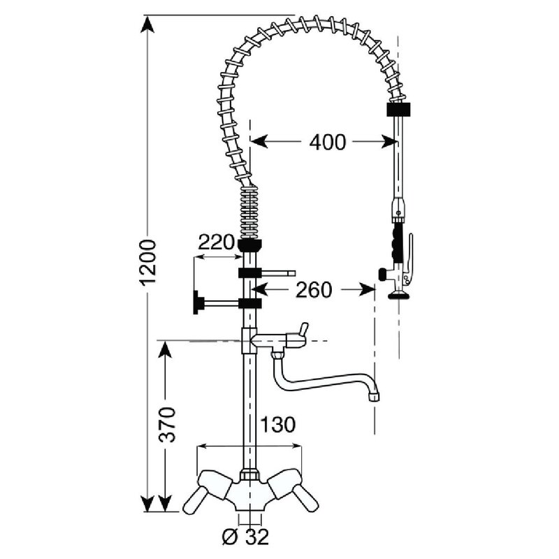 Gastro M Voorspoeldouche Monobloc Hoog Model Met Zwenkkraan