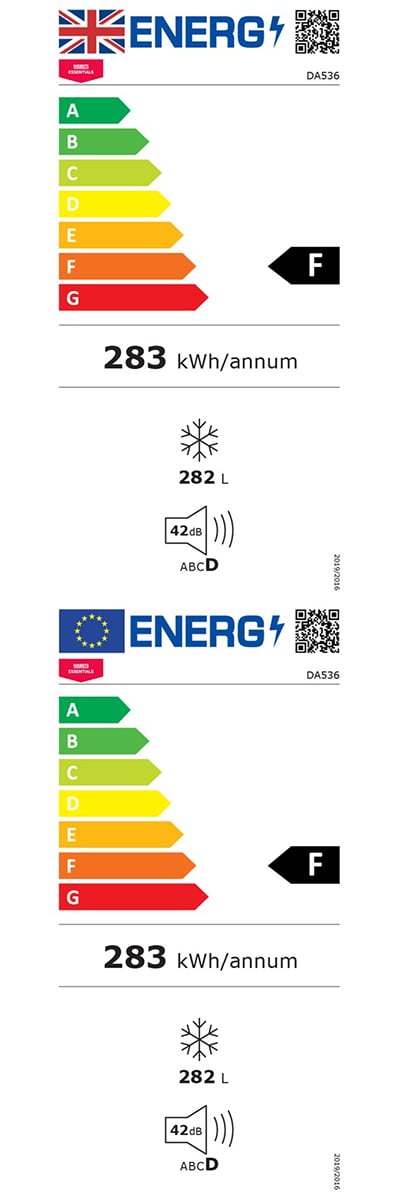 Jaarlijks Verbruik: Energieverbruik 283kWh per jaar, gebaseerd op 24 uurs testresultaten volgens EU-normen. Het werkelijke verbruik hangt af van de manier waarop het apparaat wordt gebruikt en waar het zich bevindt.