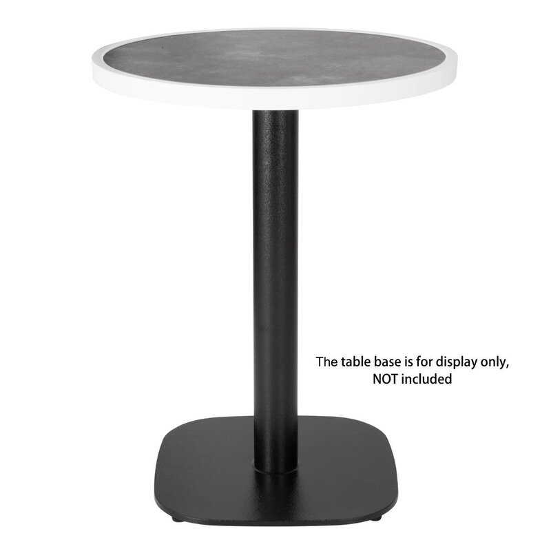 Introduceer stijlvolle en duurzame toevoegingen aan uw eetruimtes met dit ronde tafelblad van Bolero. Dankzij de afwerking met donker steeneffect krijgt het tafelblad een unieke en moderne uitstraling die een eigentijdse stijl aan uw eetkamer toevoegt. Het tafelblad is voorgeboord voor de Bolero-tafelonderstellen en is snel en eenvoudig te installeren. Dit maakt het ook gemakkelijk voor u om stijlen te mixen en matchen om uw locatie een frisse upgrade te geven. Het Bolero-tafelblad is gebouwd met een middenstuk van gehard glas en een gepoedercoate aluminium rand en is zeer goed bestand tegen vlekken, krassen en temperaturen tot 180°C. Dit zorgt ervoor dat het tafelblad in drukke eetkamers in nieuwstaat blijft.