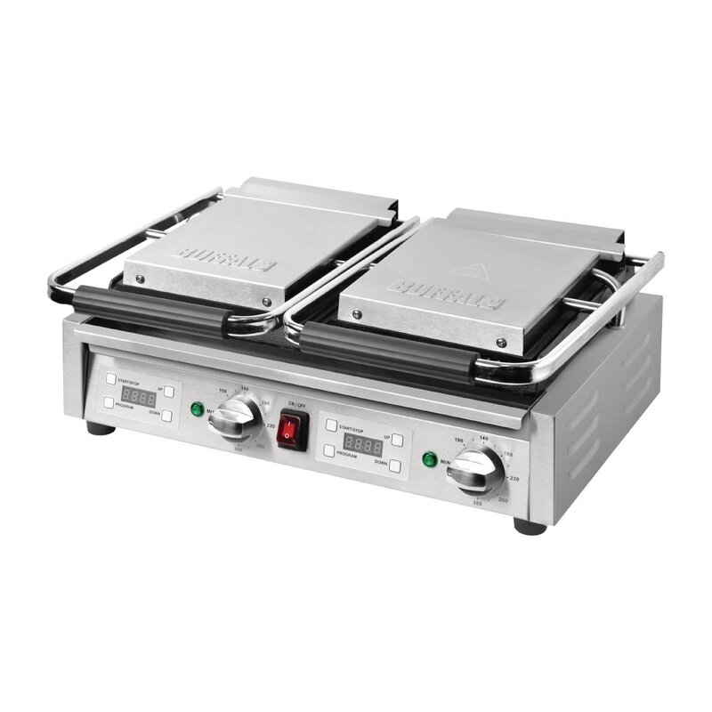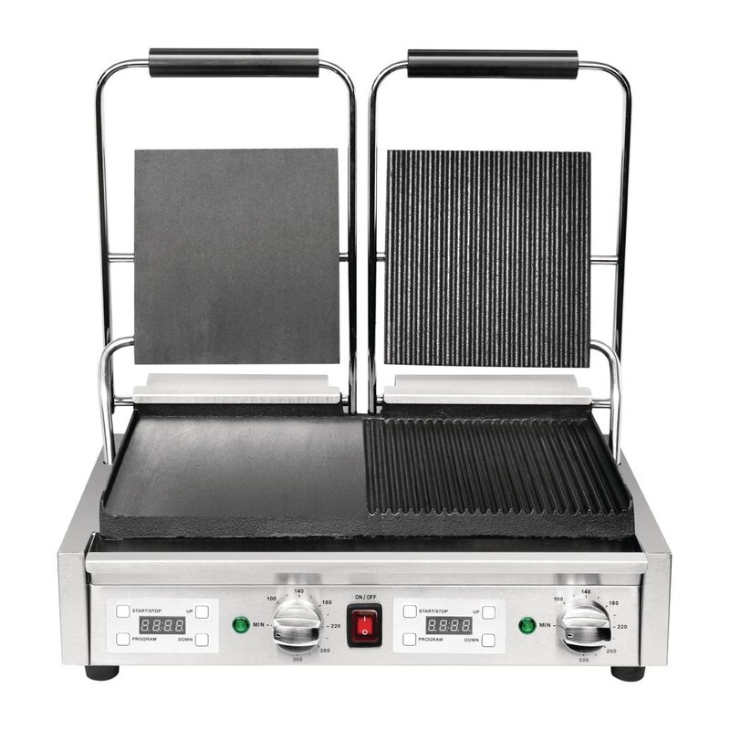 Buffalo Dubbele Halve Geribbelde Contactgrill