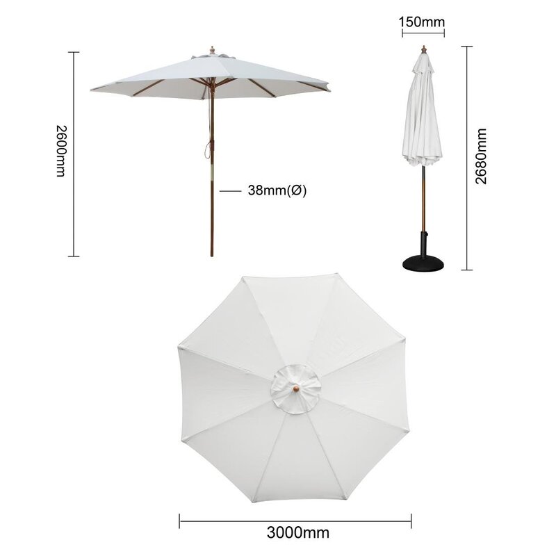 Bescherm uw klanten tegen de zon met deze stijlvolle parasols. Geschikt voor elke buitengelegenheid. Eenvoudig te openen en sluiten. Zware parasolvoet apart verkrijgbaar.
