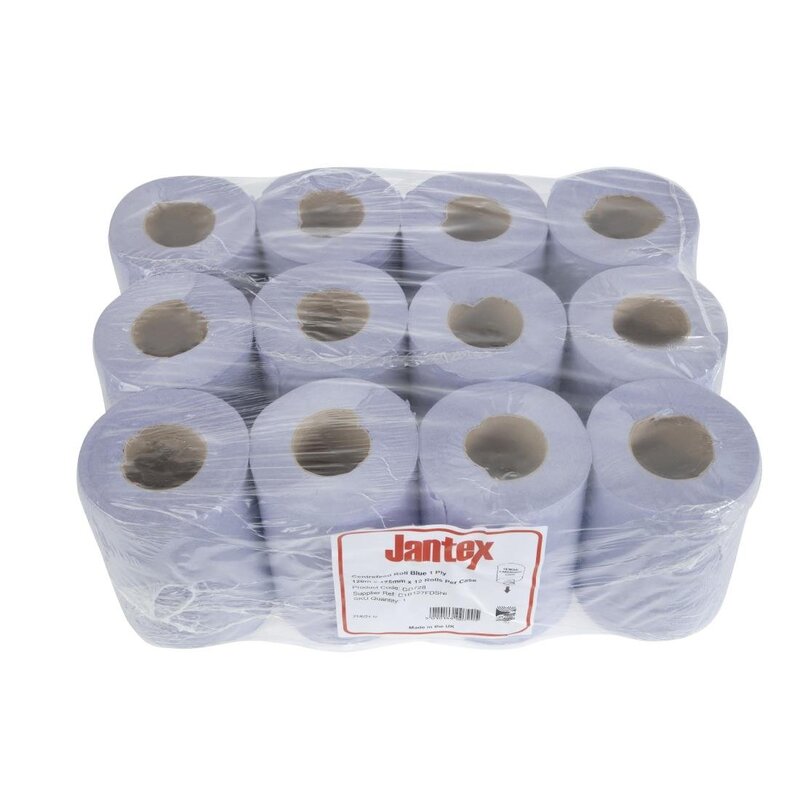 Jantex Blauwe Mini Centrefeed Rollen 1-laags (12 Stuks)