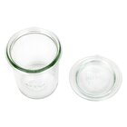 Glazen potten voor stijlvol serveren van voorgerechten, sauzen en nagerechten. Vaatwasserbestendig en compleet met deksels geleverd.
