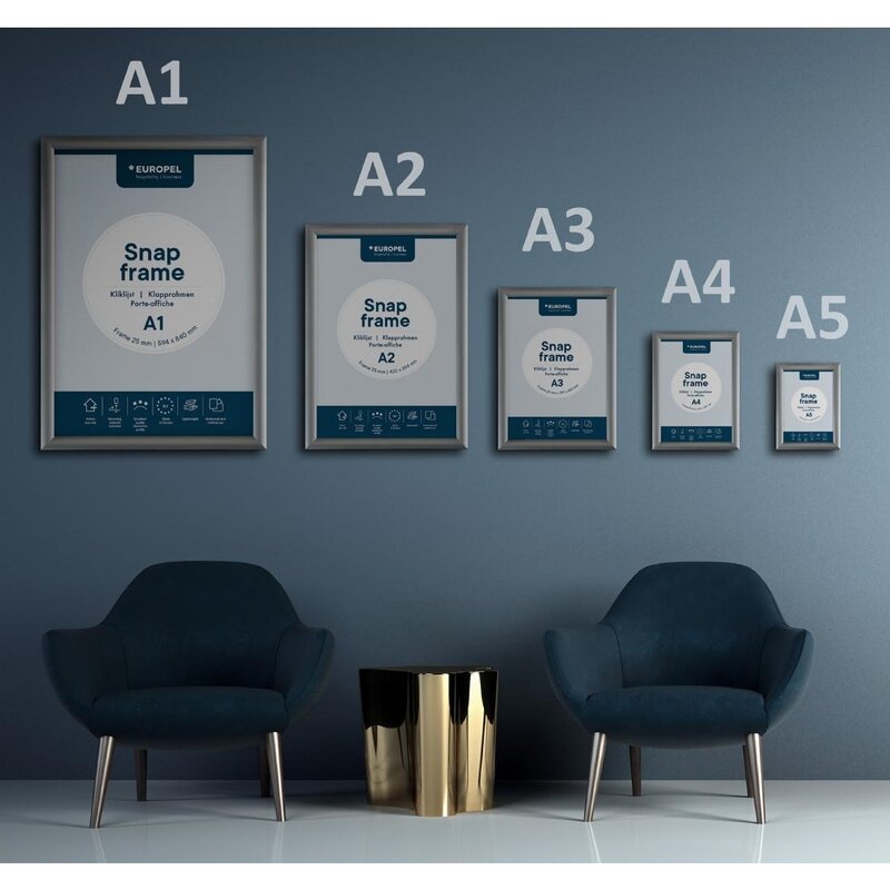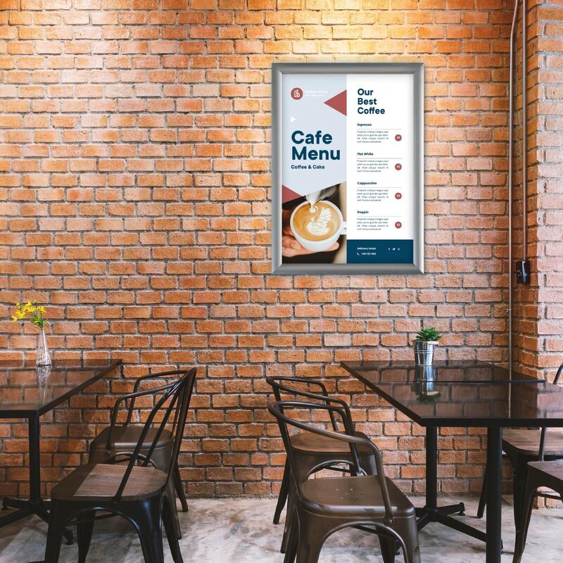 Toon uw advertentie in uw winkel of uw menu van de dag in uw restaurant met de Europel Clicklijst. Deze elegante clicklijst kan worden gebruikt voor posters, foto's, afbeeldingen, documenten, certificaten, promoties of marketingmaterialen. Posters verwisselen uit deze clicklijst is vrij eenvoudig. Open gewoon de vier veerbelaste frame-randen, verwijder de anti-reflecterende beschermer en plaats de graphic, poster of kunstwerk, sluit de randen en hang de lijst weer op. Het beschermende dekblad beschermt de posters tegen vuil, stof, vocht en vingerafdrukken. Bovendien is het blad van de cliplijst anti-reflecterend, zodat de esthetiek van de getoonde afbeeldingen wordt gemaximaliseerd. Gemaakt van hoogwaardig aluminium, is deze posterlijst gebouwd om jarenlang mee te gaan. De aluminium constructie maakt de graphic cliplijst duurzaam maar tegelijkertijd licht genoeg voor handig transport. Het monteren van deze clicklijst aan de muur is zo eenvoudig als 1, 2 en 3. Een wandbevestigingsset is ook inbegrepen bij de aankoop, dus alles wat u hoeft te doen is de gaten boren, schroeven plaatsen en de lijst monteren. Zo simpel is het!
