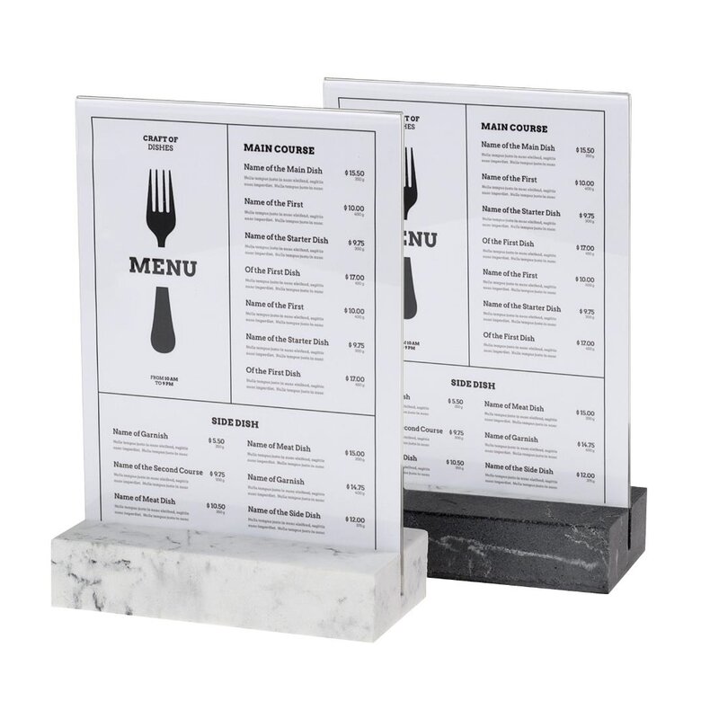Verhoog uw presentatie met onze premium A5 portret bordenhouder, ontworpen voor een verfijnde en kristalheldere presentatie van menu's, advertenties en andere belangrijke informatie. Gemaakt van hoogwaardig, kristalhelder acryl, biedt deze bordenhouder een onberispelijke en professionele uitstraling die elke omgeving verfraait. De zware witte polystone basis zorgt voor stabiliteit en voegt een vleugje elegantie toe aan uw display. Of het nu gaat om menu's in chique restaurants, promotiemateriaal in winkelomgevingen of informatieve displays in bedrijfsomgevingen, onze A5 portret bordenhouder met luxe zware witte polystone basis is de perfecte keuze voor een verfijnde en effectieve presentatie.