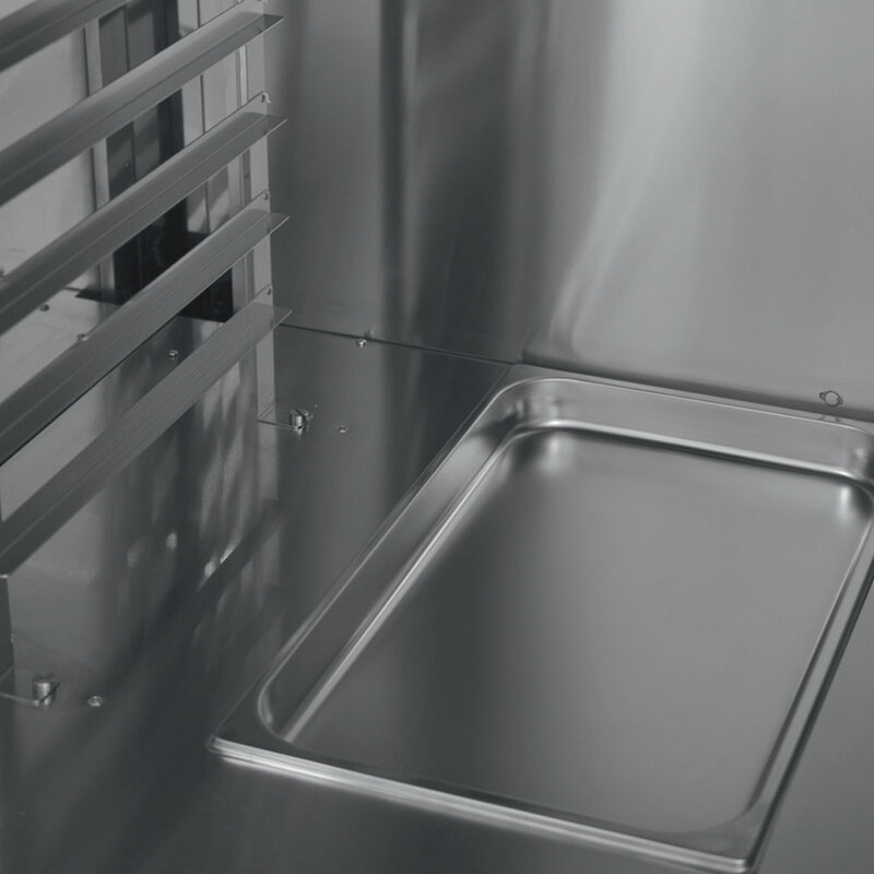 - Interne kuip GN (op de bodem) om water in te laten en de kast te bevochtigen.