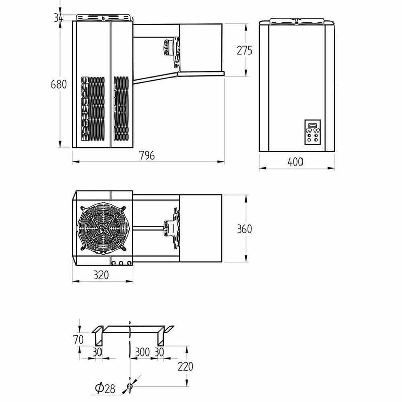 - Koeleenheid breedte 400 mm, weinig ruimtebeslag.