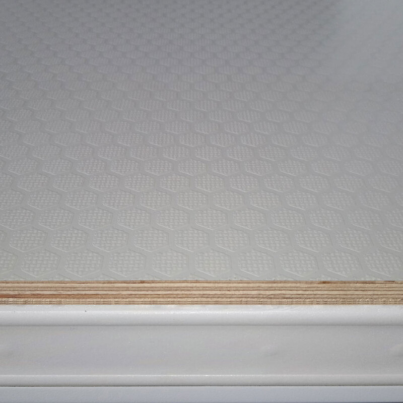 - Vloer bedekt met antislip “honingraat” fenolhars.