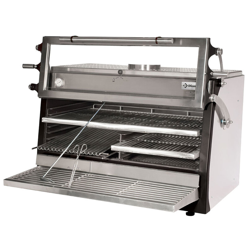 - Een houtskooloven is de perfecte combinatie tussen barbecue en oven, waarbij het beste van beide opties in één apparaat wordt gecombineerd. De meest authentieke smaak van grillen in al uw gerechten door aroma, sappigheid en de perfecte textuur toe te voegen, en dat allemaal in het comfort van uw eigen keuken. - Bespaar tot 40% op houtskool in vergelijking met traditionele grills. En op hetzelfde moment win je veel tijd, omdat het tot 35% sneller gaart dan op een gewone grill. - Het unieke ontwerp van het roostersysteem en vetopvanger, er zijn geen vlammen in de oven en het eten zal niet verbranden.