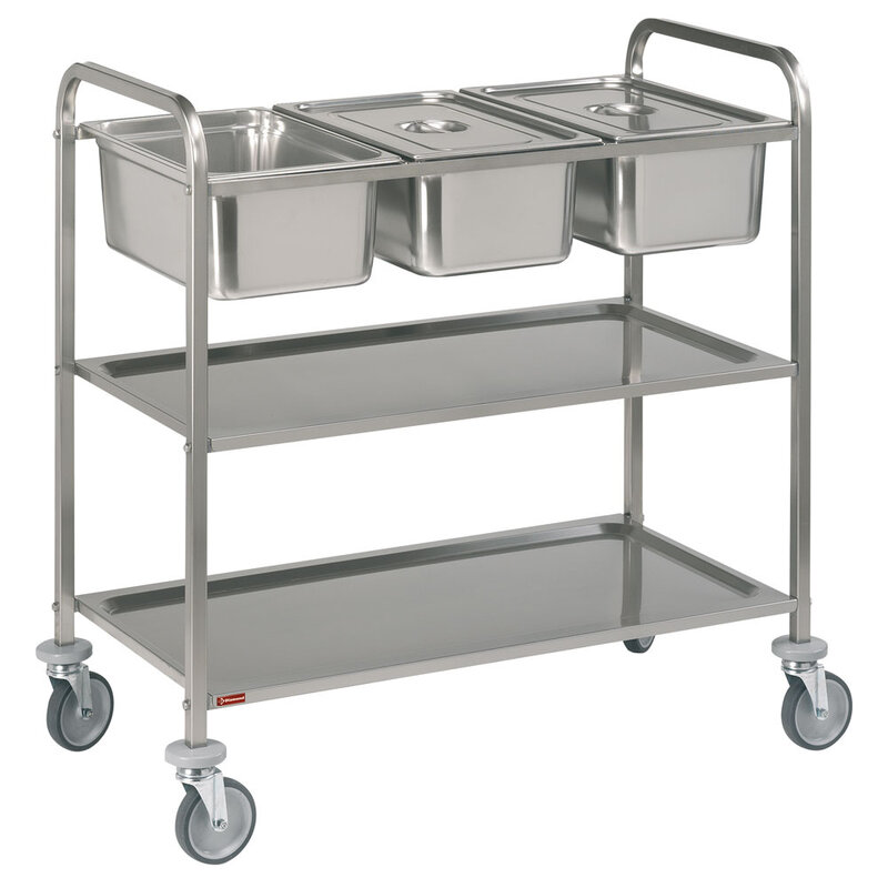 Serveerwagen in R.v.s., 3x GN 1/1 + 2 Niveau's
