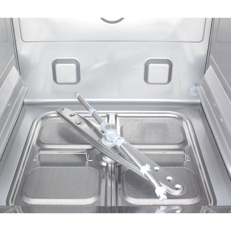 Automatische kuipwaterafvoerfunctie, geïntegreerd in het bedieningspaneel (geen noodzaak om de dop handmatig te verwijderen). Automatische kuipvulling. Anti-terugslagklep. Warm water spoeling (waterverbruik per cyclus 2 liter), roestvrijstalen ketel (2,6 lt - 2,6 kW). Mogelijkheid om de temperatuur van de kuip en de ketel te regelen. Hoogrendement waspomp (dubbele stroom) die een aanzienlijke energiebesparing garandeert. Microschakelaar om de cyclus te stoppen als de deur wordt geopend. Veiligheidsthermostaat. Inbegrepen: 2 manden, 1 "ondertassen" steun, 1 bestekbeker, wateraansluiting en afvoerleidingen.