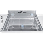 - Bedieningspaneel bovenaan de kap, met digitaal display. Korf 600x500 mm, capaciteit 22 borden; bakplaten 600x400 (zie accessoires); bierkrattenkorven 600x400 tot 135 L; ook compatibel met korven 500x500 mm. Kapopenings- en sluitsysteem op hefbomen. Verticale waspomp (dubbele stroming), zelflozend en zelfreinigend. Dubbelwandige constructie volledig in AISI 304 roestvrij staal. Roterende was- en spoelarmen (boven en onder), volledig in roestvrij staal. Zelfreinigende rvs-sproeiers.
