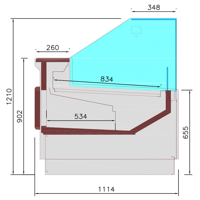 - Roestvrijstalen display AISI 304, 834 mm diep.