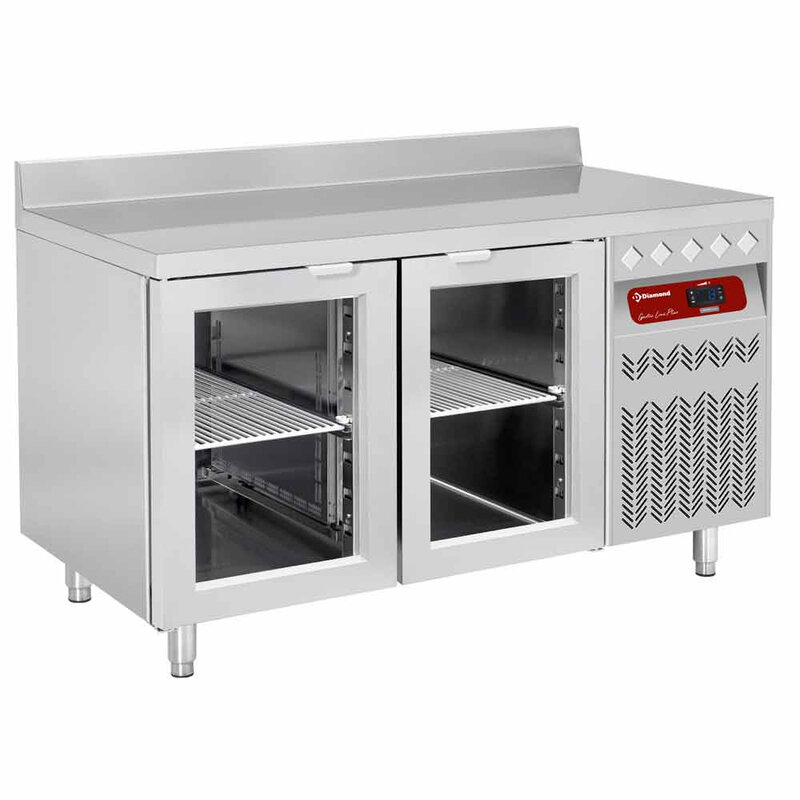 Wand- Koeltafel Geventileerd, 2 Glazen Deuren GN 1/1, 260 Liter