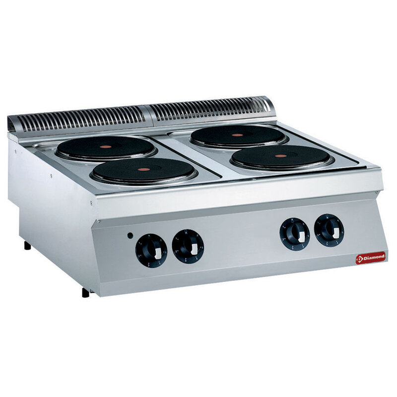 - 4 onafhankelijke kookplaten Ø 230 mm (4x 2,6 kW).