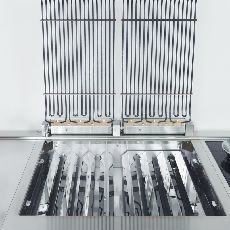 - De verwarmingselementen kunnen tot 90° worden verhoogd voor eenvoudig onderhoud.