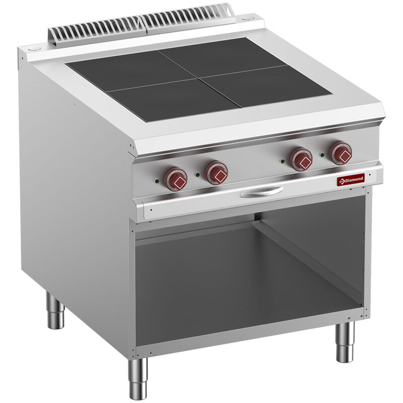 Elektrisch Fornuis Met 4 Uitgelijnde Kookplaten op Open Kast