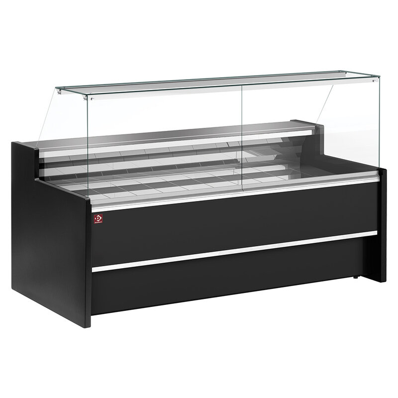 Geventileerde Gekoelde Vitrinetoonbank- Met Recht Frontglas 90° Met Reserve - Zwart